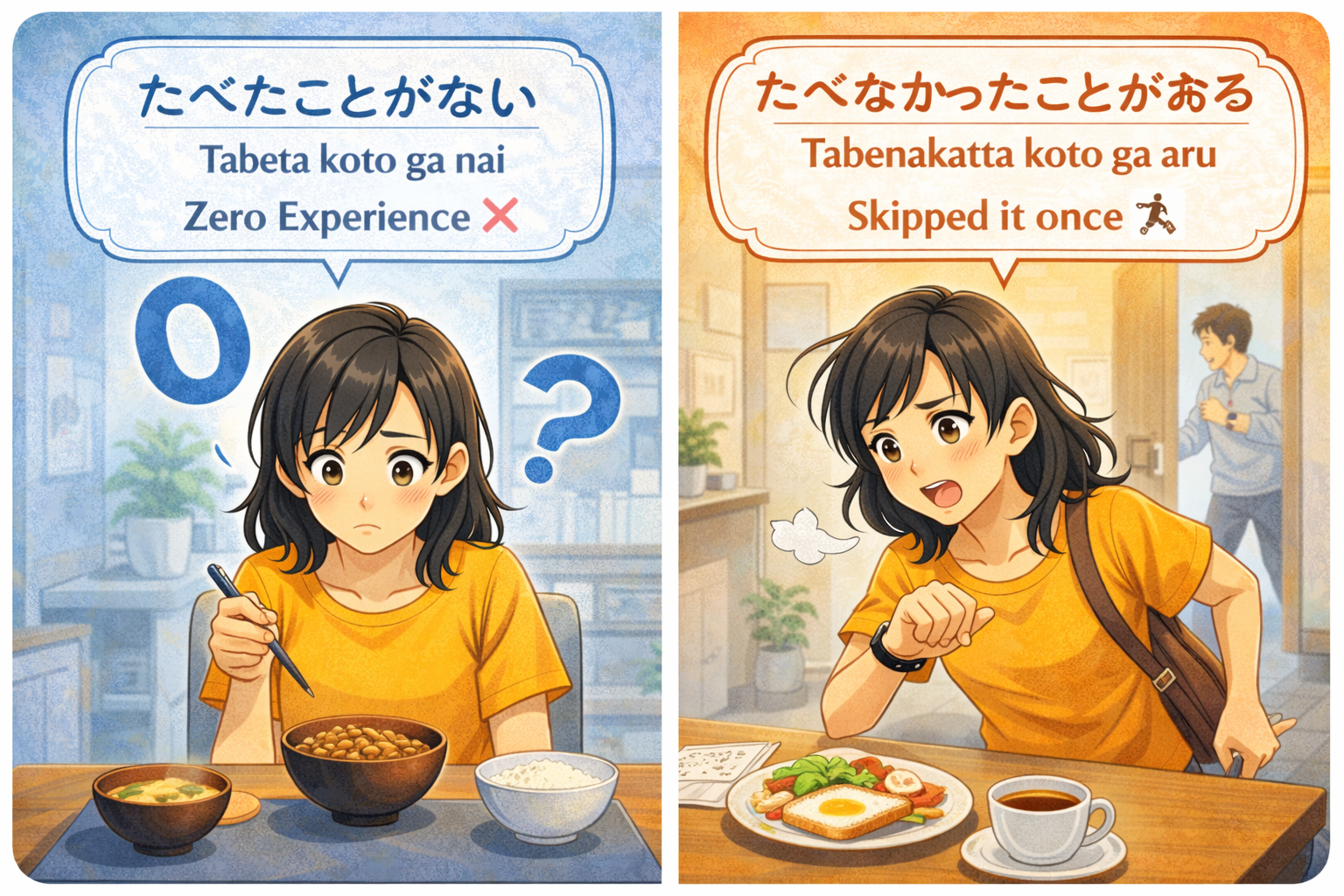 「食べたことがない」と「食べなかったことがある」、どちらも食べ物の経験について話している言葉ですが、少しニュアンスが違います。今回は、この2つの言葉の違いを、日本語学習者の皆さんにJPLT Online Japanese Language SchoolのスタッフEriが、わかりやすく解説していきます。
