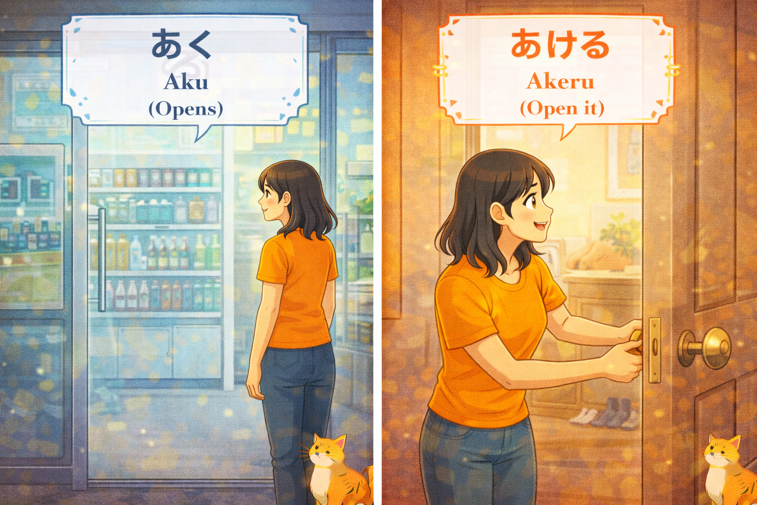 ![(Alt Text: Automatic door opening [Aku] vs. Joy opening a door [Akeru])](https://jplt-dialogplus.com/wp-content/uploads/2025/11/ChatGPT-Image-Jan-23-2026-03_32_11-PM.png)
