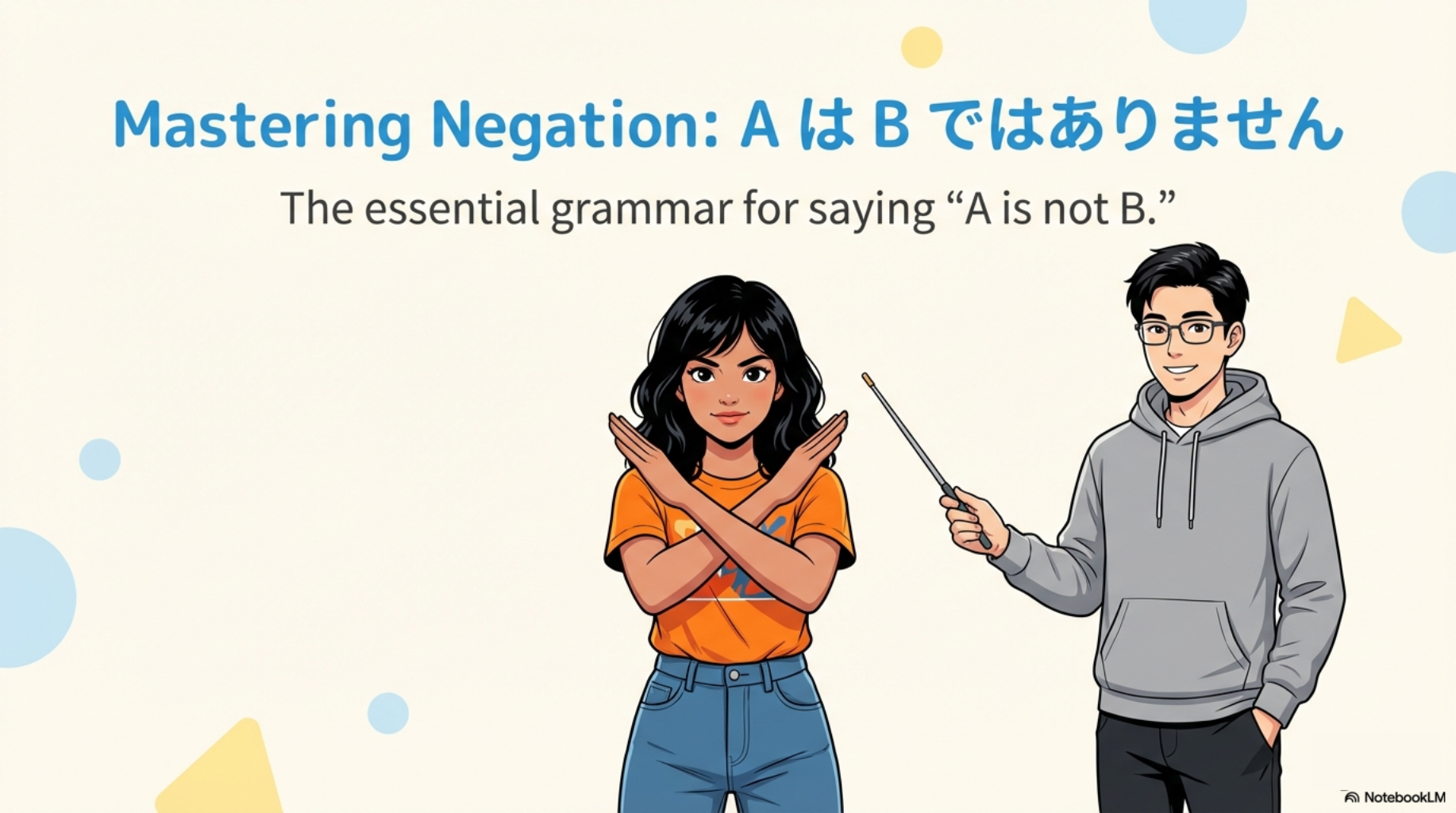 「ではありません」は、AとBをつなぐ線を断ち切る言葉です。「A ≠ B」という関係を作ります。